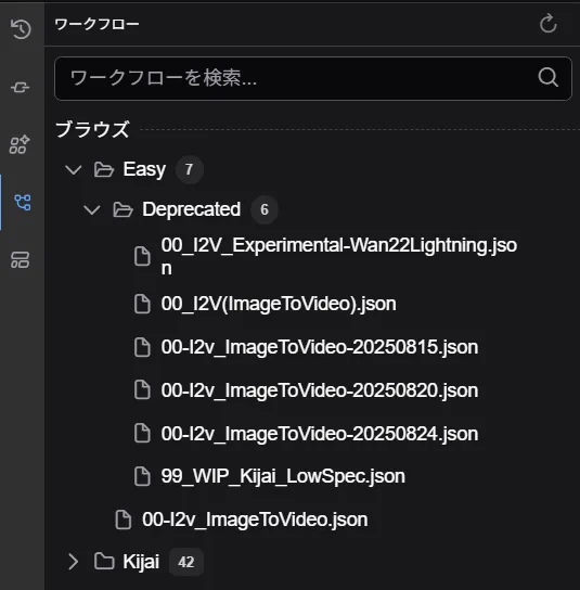 ちなみに別途ComfyUIを使っていると、そちらで開いていたWorkflowが表示されてしまうのでEasyWan22のWorkflowを開きなおしてください。